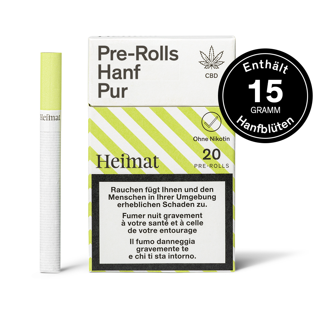 Heimat pre-rolls are the world’s first cannabis cigarettes made entirely from Swiss CBD flowers – no tobacco, no additives, no fillers.
